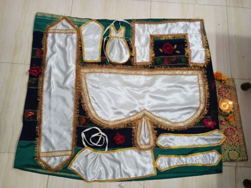 દેવતાને જે અર્પણ કરવામાં આવે છે તે ભક્તિમાંથી આવવું જોઈએ. અમે દેવતાઓ માટે પરંપરાગત વસ્ત્રો ડિઝાઇન અને પ્રદાન કરીએ છીએ – જે કાળજી અને પરંપરા પ્રત્યે આદર સાથે બનાવવામાં આવે છે. દરેક વસ્ત્રો પ્રસાદ તરીકે તૈયાર કરવામાં આવે છે, પછી ભલે તે દૈનિક દર્શન, તહેવારો અથવા ખાસ પૂજા માટે હોય.