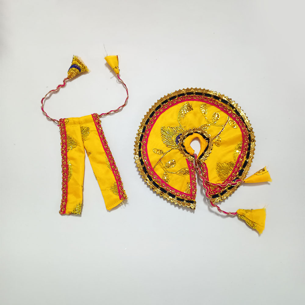 મોરપિચ્છથી પ્રેરિત આ પીળો પોશાક લડ્ડુ ગોપાલની દિવ્યતા દર્શાવે છે. ખાસ કરીને જન્માષ્ટમી અને તહેવારો માટે ઉત્તમ પસંદગી છે.