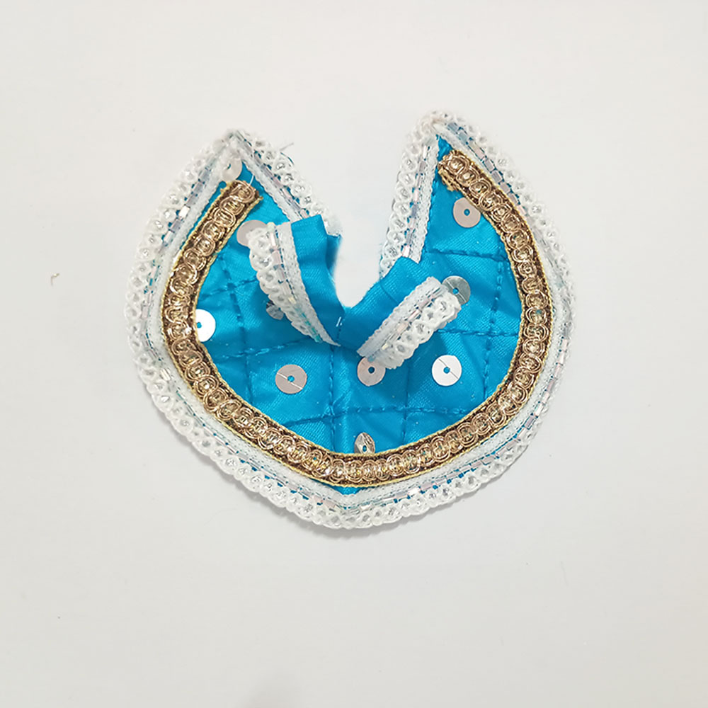 વાદળી પોશાક શ્રીકૃષ્ણના દિવ્ય સ્વરૂપનું પ્રતિબિંબ છે. શાંતિ અને ભક્તિ દર્શાવે છે.