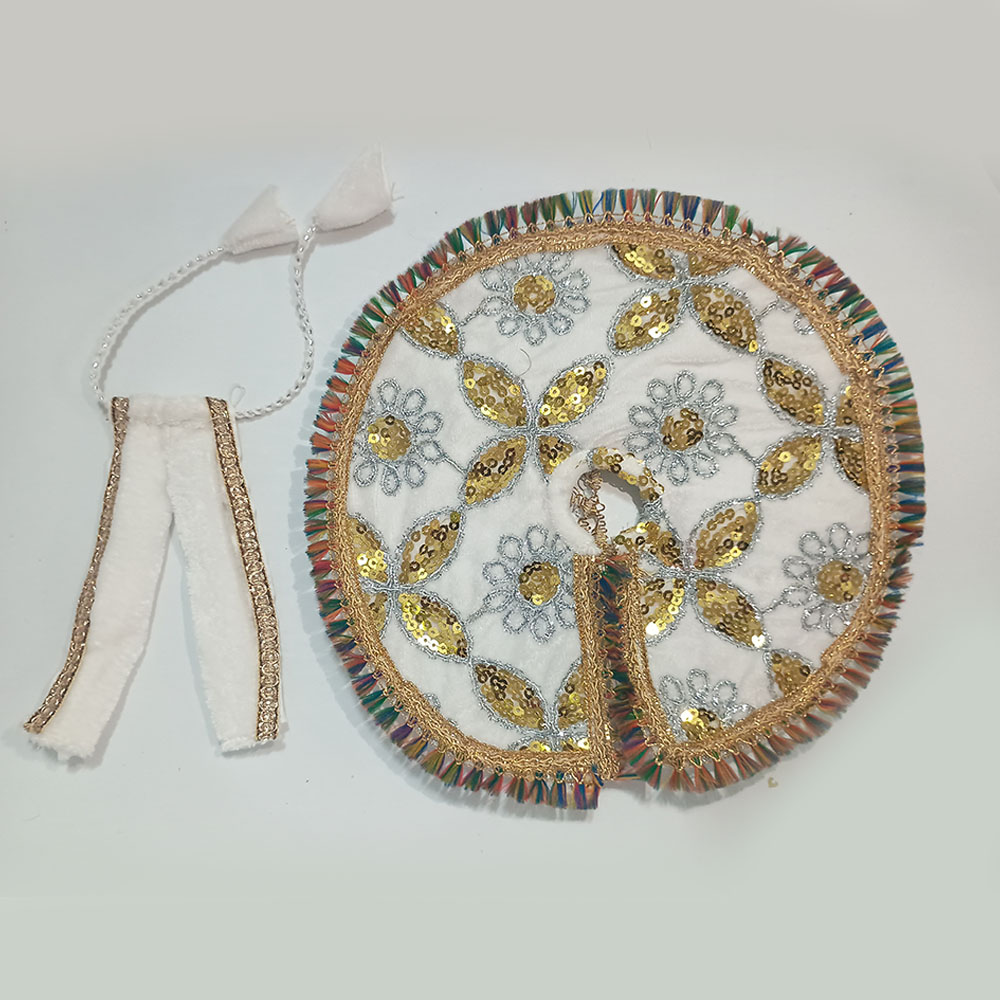 સફેદ વેલ્વેટ મલ્ટીકલર લડ્ડુ ગોપાલ પોશાક ( સાઇઝ નં- 5 )